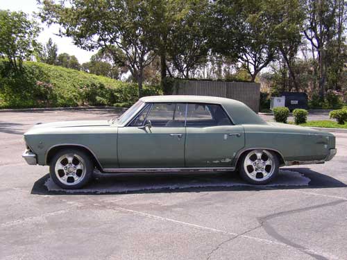 ![]() The current state of this '66 Malibu. Using my crude Photoshop skills I created these next photos using American Racing wheels. ![]() This is one of my favorite wheel choices but as you can see this Chevelle is way too high up front for my taste. The only mods from stock so far are Hotchkis springs in the back (which give the car a 1" drop) and KYB shocks. I did this first as the original rear springs were bottoming out all over the place. The next step was factoring in the rake I wanted. I would be happy with a "straight" look as well but anyway... ![]() The Hopster wheels again. ![]() The Torq Thrust look. ![]() These Salt Flats may be the winner. SO, my big dilemna is this:I want to bring the car the best possible handling I can using the Global West negative roll products BUT I am unsure of what my stance would be using those products. I read the Global West site up and down and they recommend you stick to their specs and not go with lower front springs in the front for example. Their spring does not lower at all but the tall spindles do lower the front 1 inch.Very cool reading at http://www.globalwest.net/handling_charts%20abody.htm and http://www.globalwest.net/A-body%20questions%20answered.htm if you are interested in their stuff. Maybe use their products and use the tires to make up the stance? My other plan is to forget the Global West setup and just stick to the standard parts and use the 1" or 2" lowering springs in the front. I plan to use a 245/50 up front and 265/50 or 285/50's in back. All on 16" rims. This alone would give me a 1 to 2 inch height difference front to back so once again I am not sure how much to lower it in front. My '71 Demon with torsion bars was so much easier to deal with but oh well! Any thought and suggestions are MOST welcome, especially if you have used the Global West products. I know they're expensive but there are a lot of rice rockets I would like to show a lesson out here...ha ha ha! |